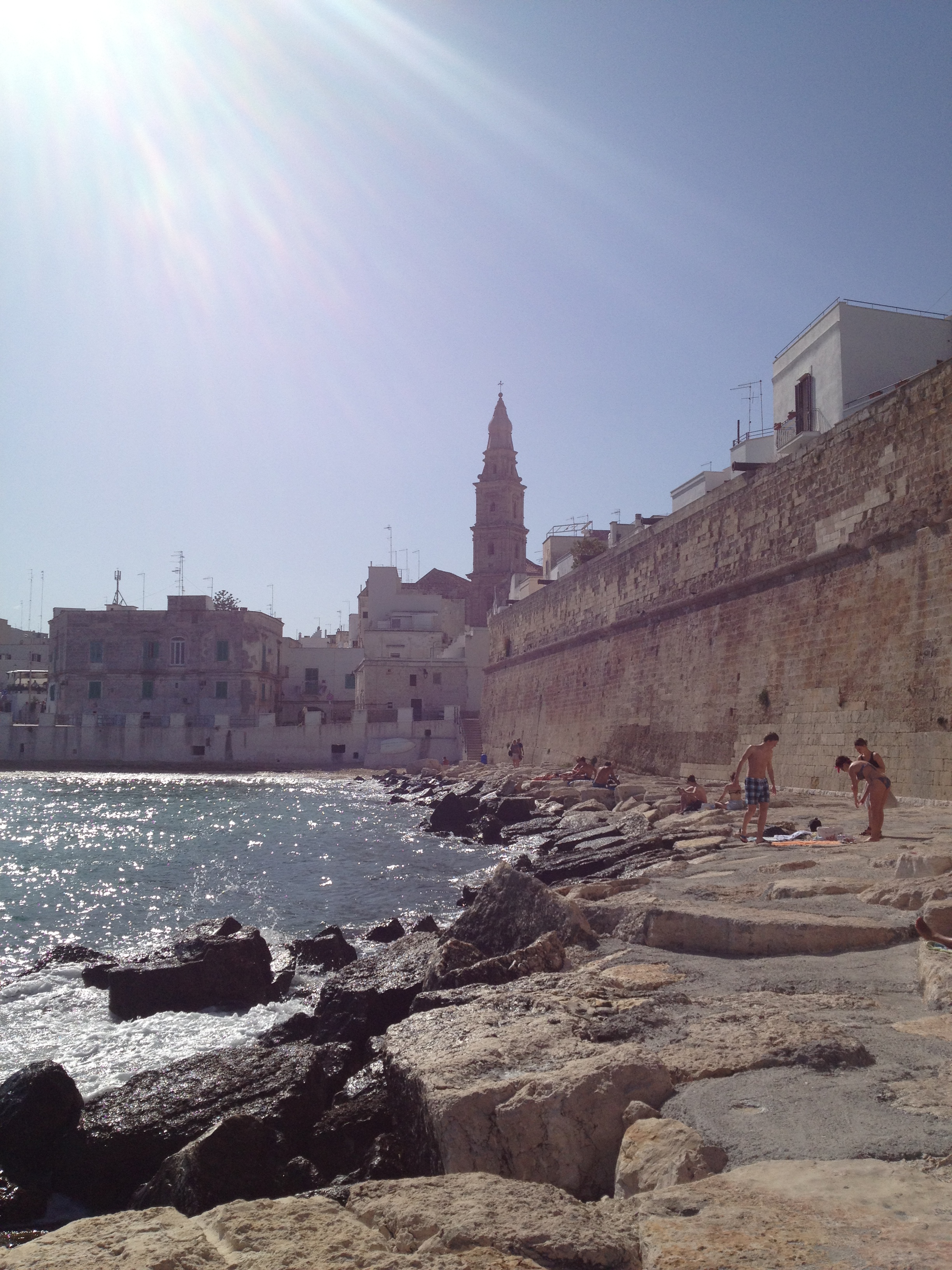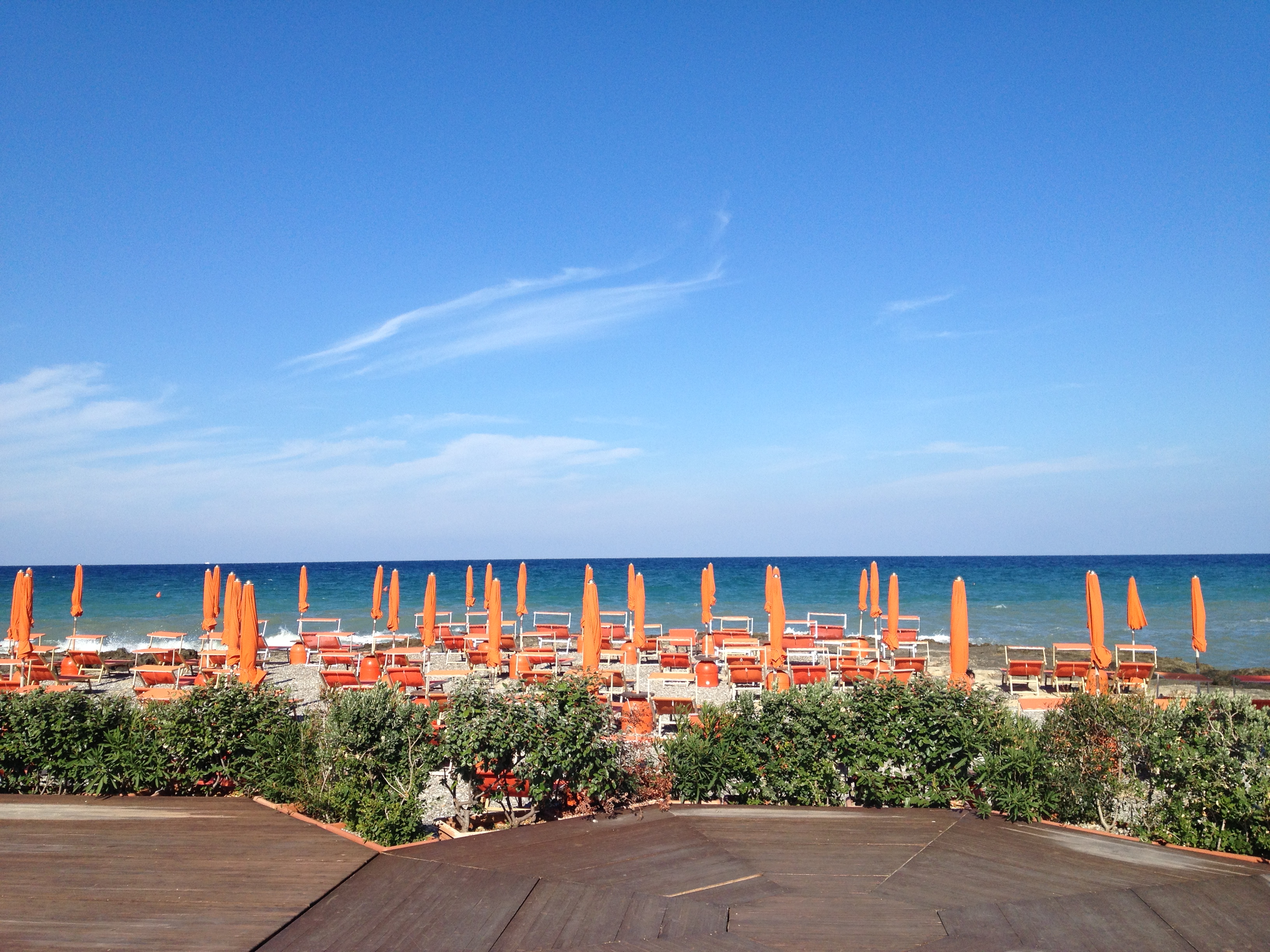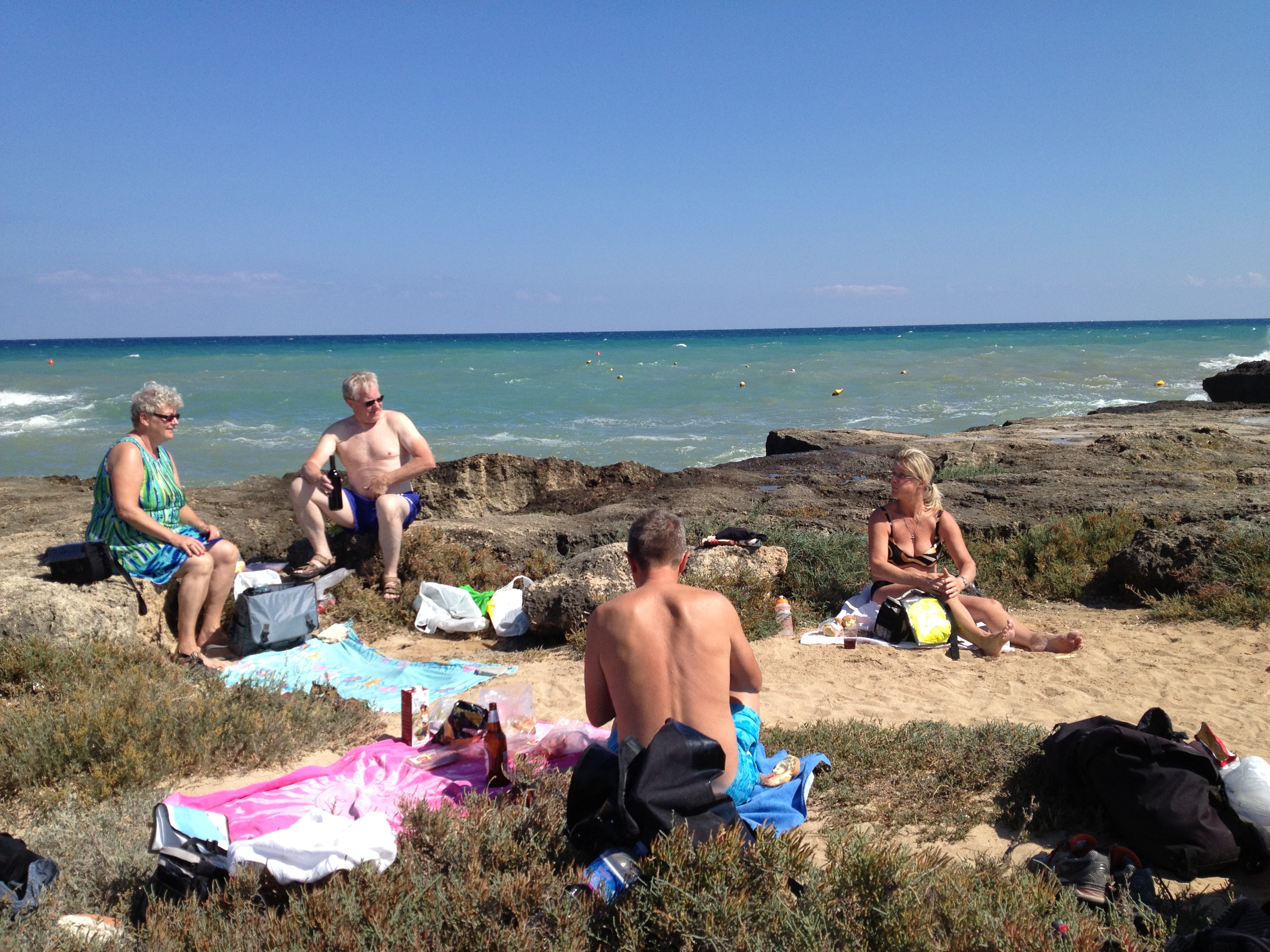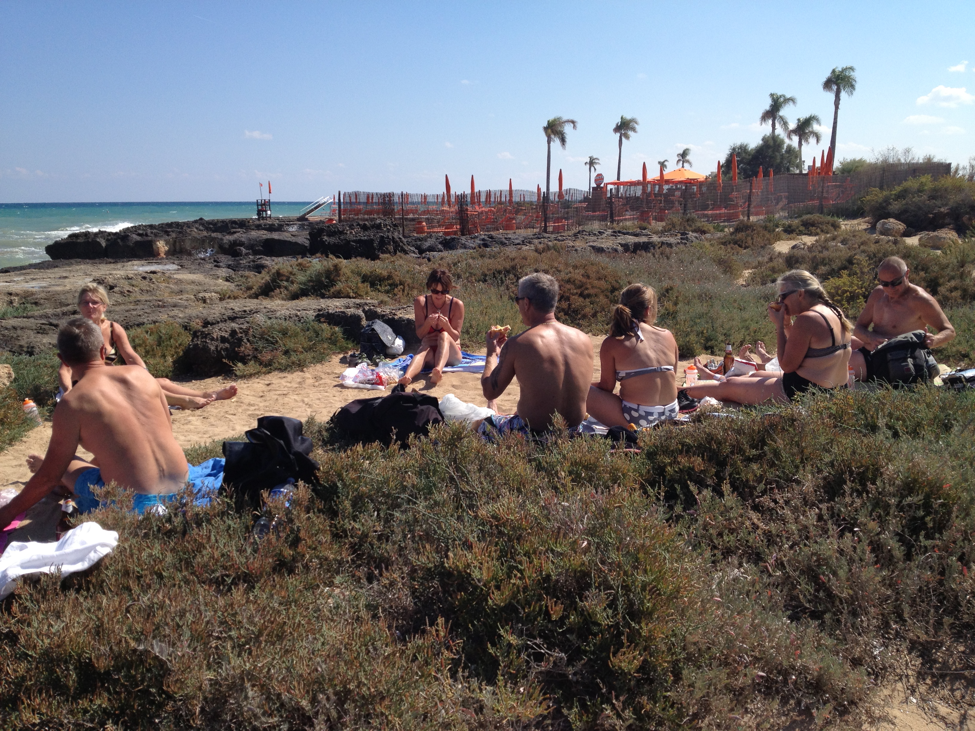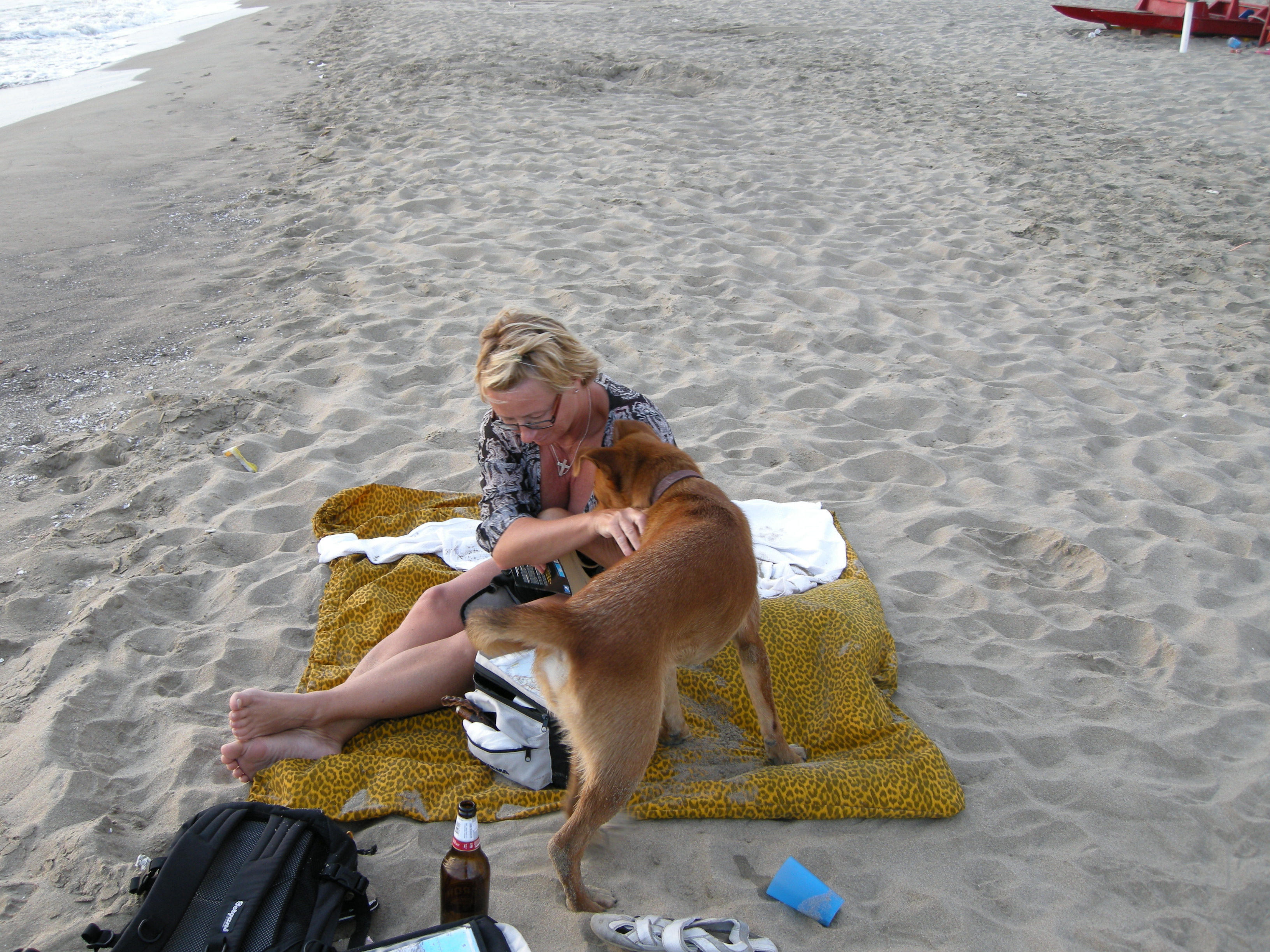 Stopp för dagen blev i utkanten av staden Mondragone. Vi var ordentligt trötta efter över 9 mil i en otrolig hetta och det var underbart skönt med en dusch. Tror aldrig jag svettats så mycket tidigare som den här dagen, inte ens på ett spinning pass. Eftermiddagen tillbringades på stranden med bad i ett turkost blått hav. Fick besök av en sällskapssjuk hund.