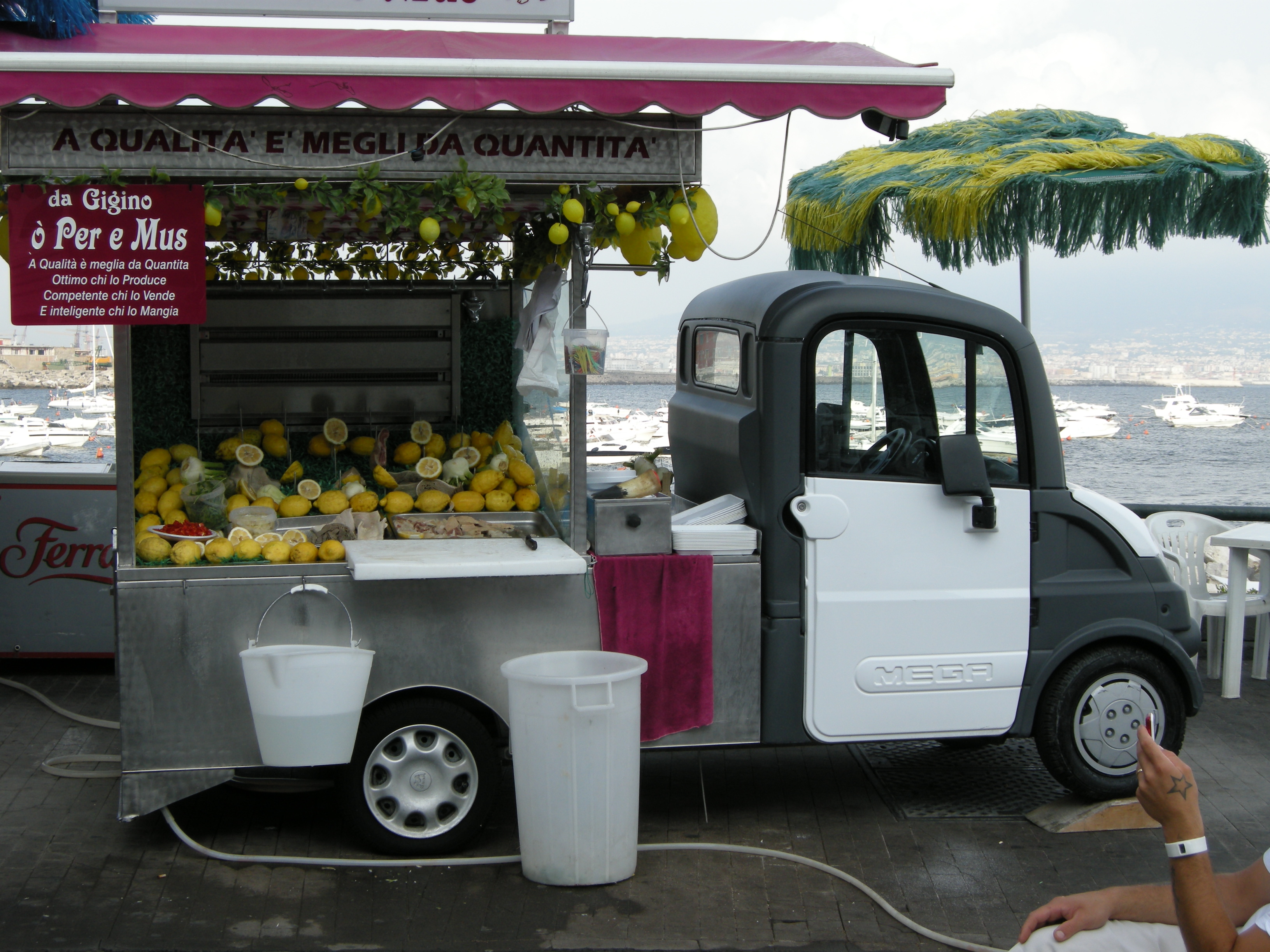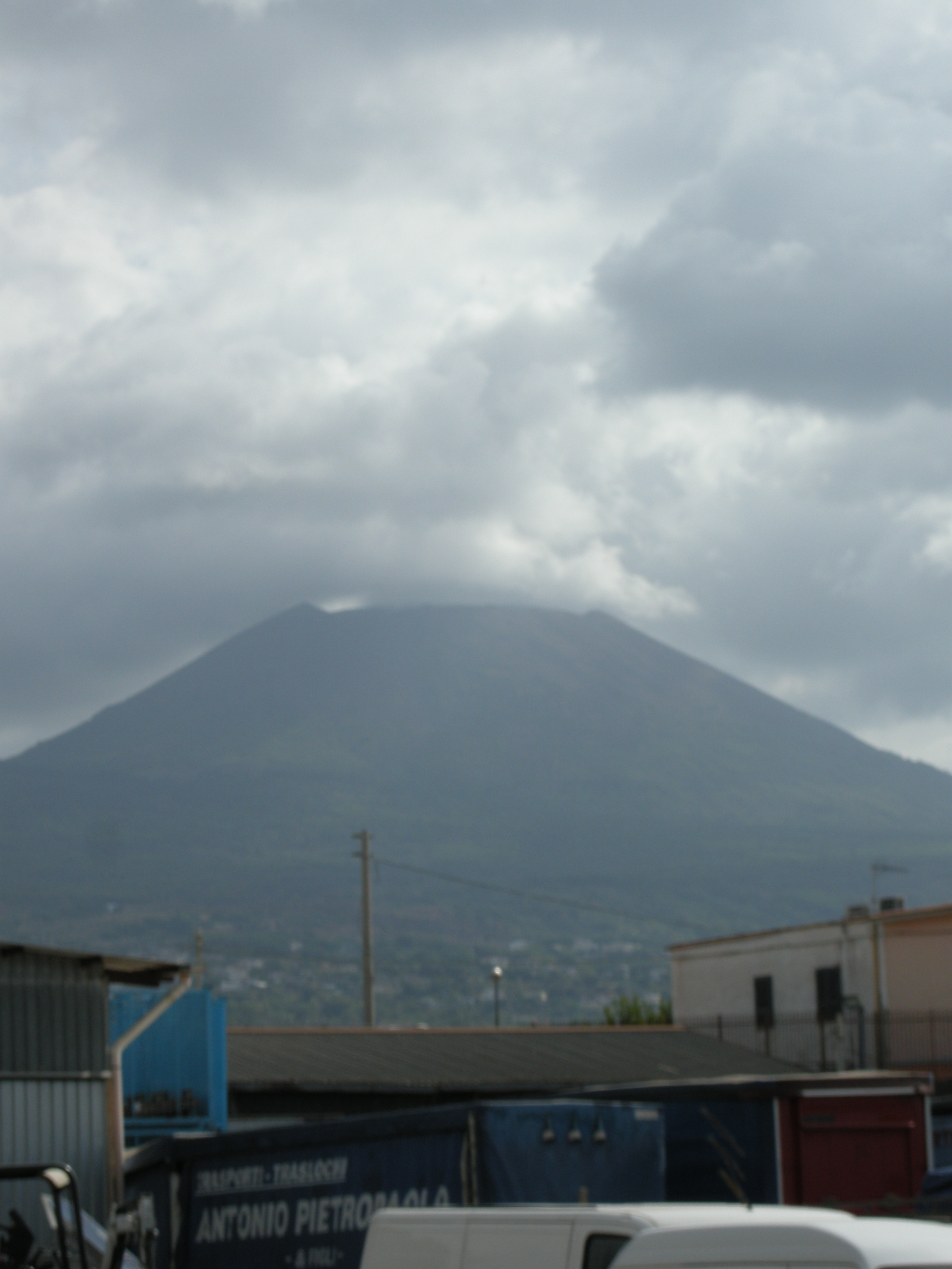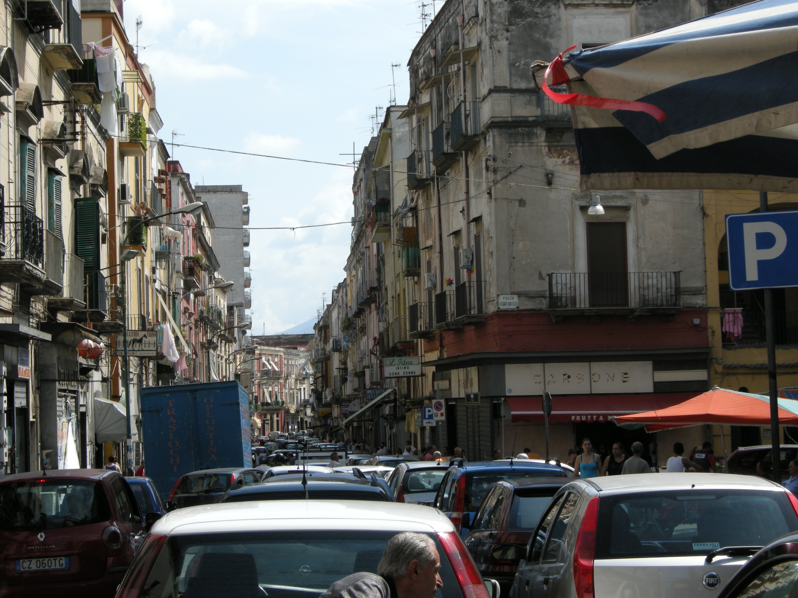 Vi fortsätter att följa SS7q mot Pozzuoli, Sofia Lorens hemstad och naturen blir vackrare och mer kuperad. Pozzuoli är en gammal stad med charm. Ute till havs ser vi ön Ischia. En vacker ö som tyvärr inte besöktes under den här resan. För att komma till Neapel från Pozzuoli finns två vägar att välja mellan. Den lätta vägen är mycket trafikerad och går genom flera tunnlar och den andra går över berget. Vi tog vägen över berget. Varmt, brant och svettigt men mycket vackert. Tänk att komma upp till byn Bacoli och få en underbar utsikt över Neapelbukten. Det är värt allt slit. Nu fick vi dessutom nedförsbacke ner mot Neapel. Tyvärr gick det inte att stå på eftersom det var gamla kullerstensgator och det vibrerade ordentligt. Det kändes i underarmarna när vi var nere i Neapels trafikkaos.