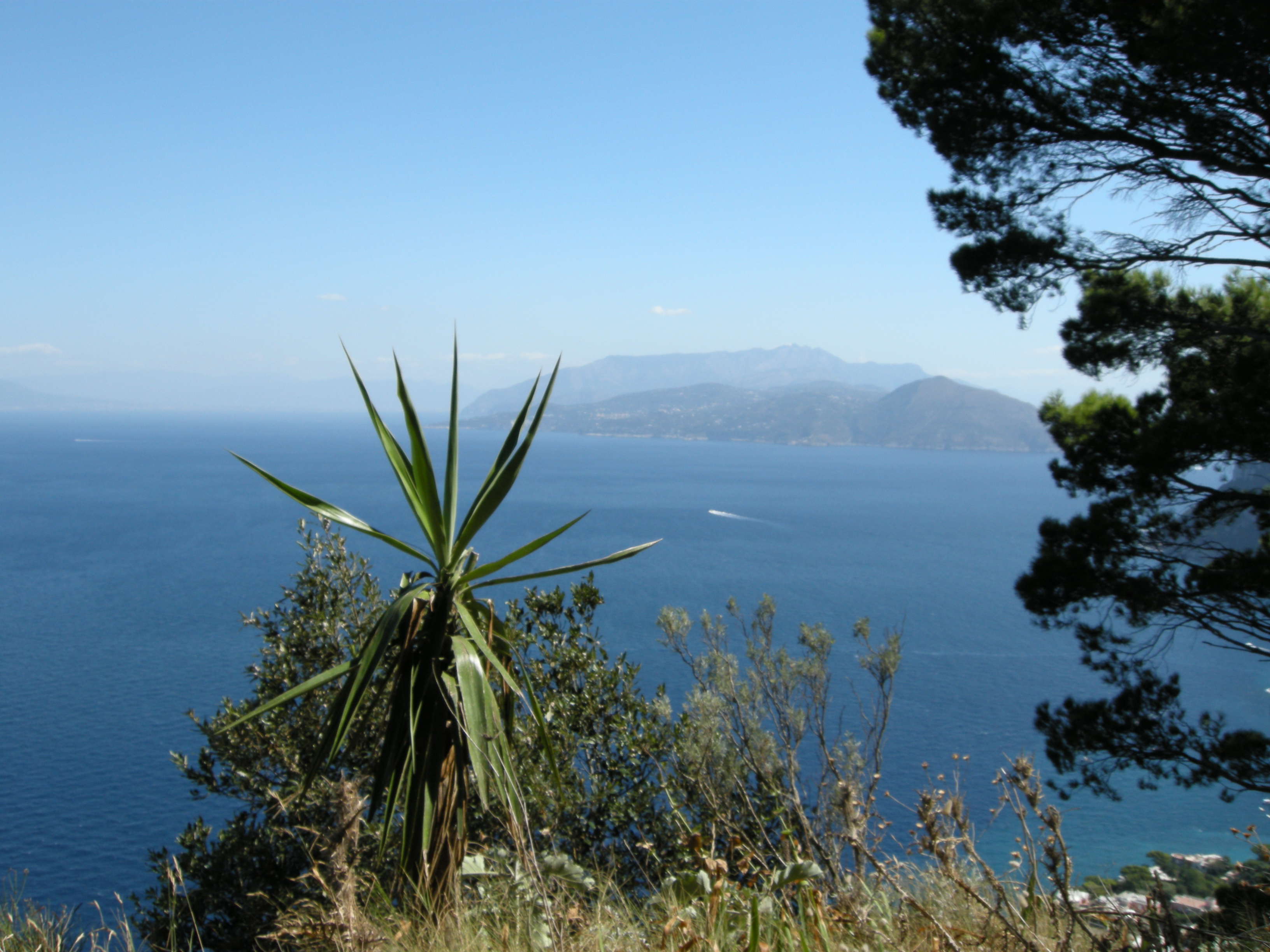 Vi befinner oss nu i en av Italiens vackra nationalpark. Cyklar genom små genuina byar och man får lön för mödan. Värsta passet kom efter byn Marma di Casal Velino. Vägen gick rakt upp och blev brantare och brantare. Jag hade fullt upp med att bara dra cykeln uppför. En cykel med packning blir bra tung i sådana stigningar. Nu saknades det bränsle och en lunch hägrade när det plötsligt dök upp en Trattoria med namn Belvedere mellan passen strax före byn Pisciotta. Så gott har det nog aldrig smakat med mat tidigare. Allt det vi blev bjuden på smakade fantastiskt. Mannen som drev restaurangen tillsammans med sin mor lagade en pasta med sås gjord på oliver från närområdet. Som avslutning blev det mammas hemgjorda Crema di Limoncello, krämig citronlikör. Nu ville jag bara somna…. men vi fortsatte till Palinuro som var dagens mål. Blev ett bad i havet innan första regndropparna och åskan kom.