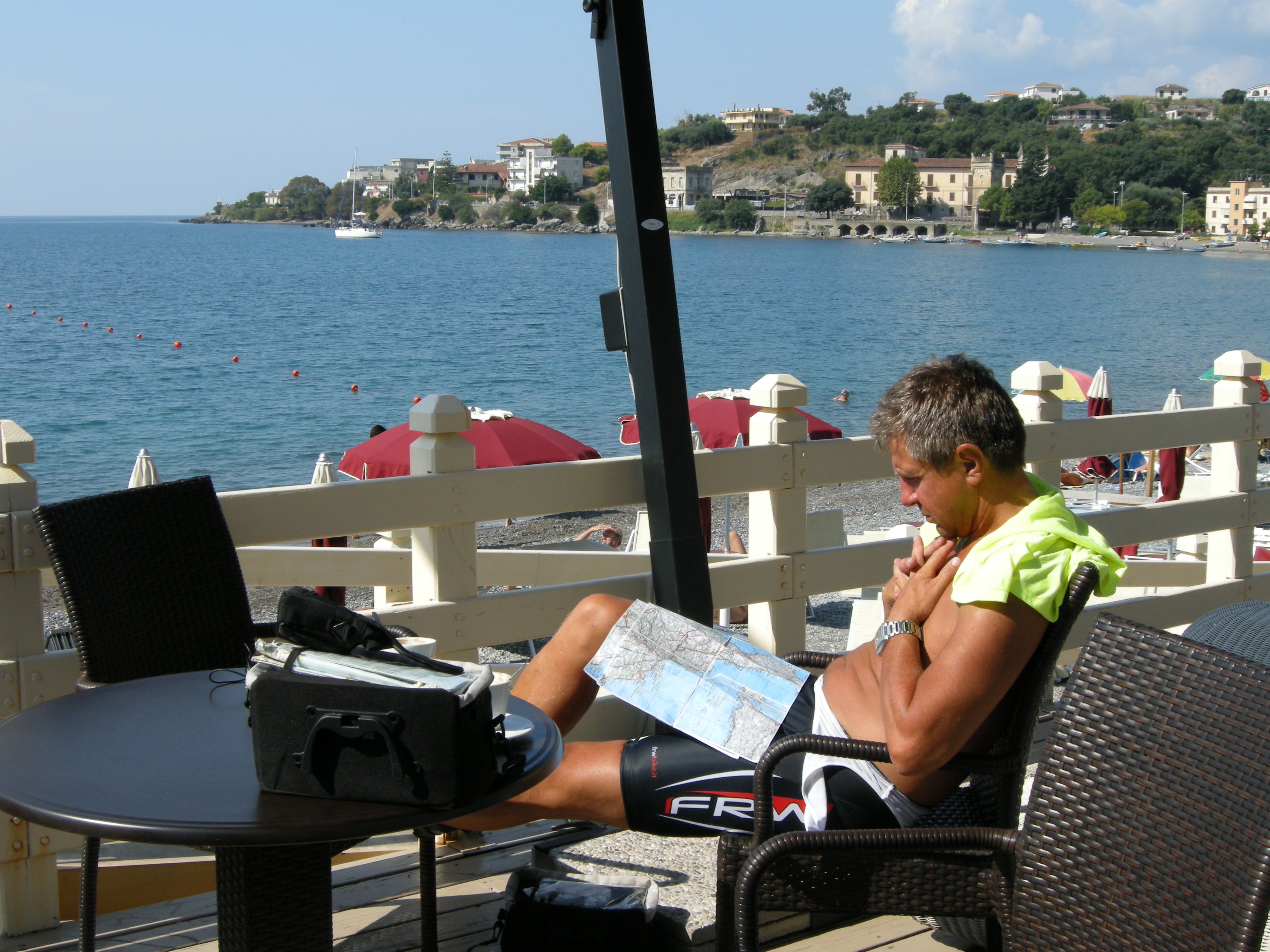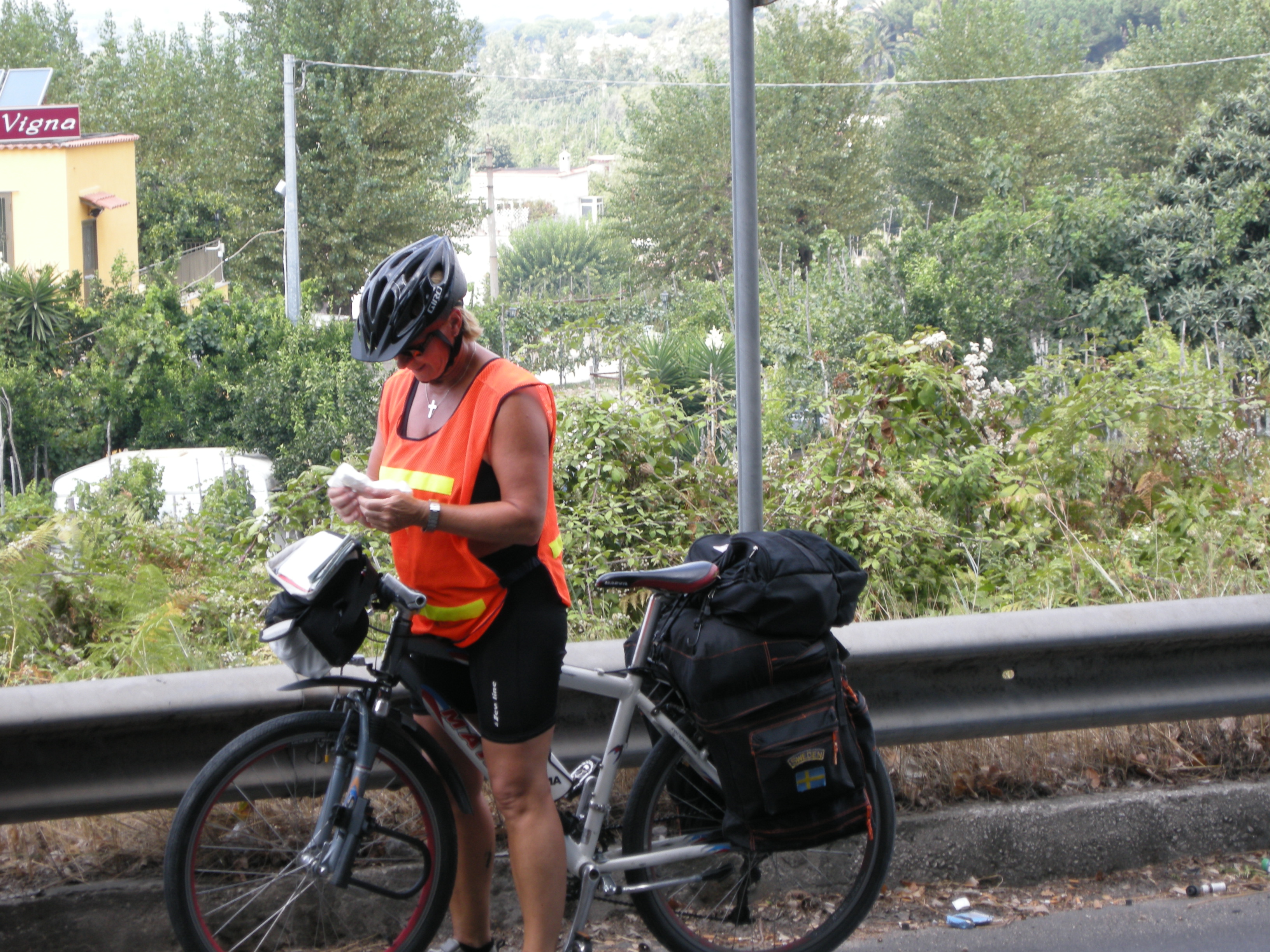 Min tanke på att cykla genom Italien kom för många år sedan då jag cyklade uppe bland nord Italiens sjöar. Plötsligt kom möjligheten så nu fick det ske. Eftersom jag rest i stora delar av norra Italien så beslöt jag mig för att cykla kusten söderut från Rom, ett område som fortfarande var oupptäckt för mig. Mitt mål var den medeltida staden Tropea nere i Kalabrien, en genuin gammal stad värt att besöka. Reskamrat blev Lennart, min man. Han bestämde sig för att följa med under de första veckorna på min resa.
