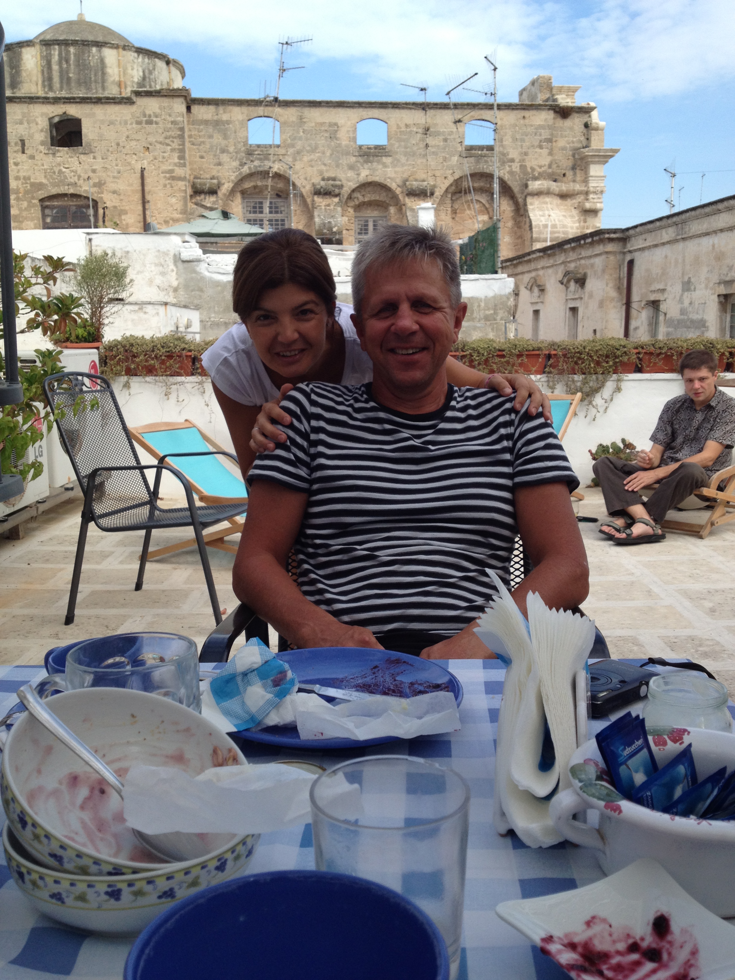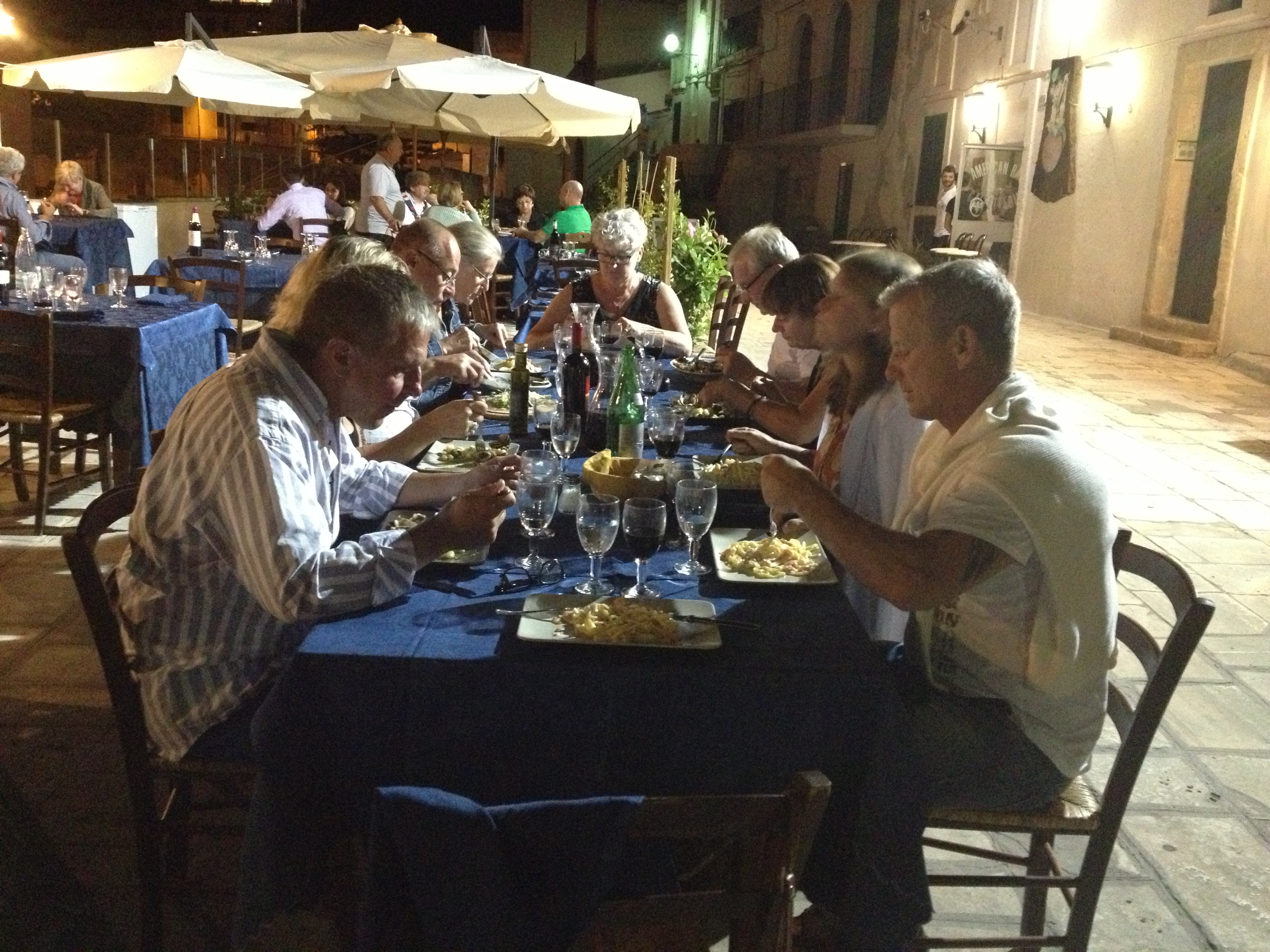 Vid den här tiden börjar det bli lågsäsong i syd Italien så många hotell har börjat stänga för säsongen men vi hittade ett vid havet som en äldre trevlig man drev. Han bjöd på middag av endast närproducerade produkter som t ex prosciutto, salami, mozzarella och andra goda ostar. Middagen avslutades med färsk frukt. Ännu en dag med mycket god mat.